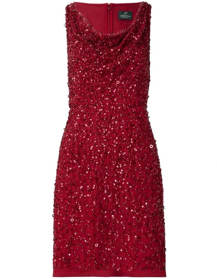 Make a striking entrance at your next party. Our glamorous cocktail dress shimmers with all over handsewn beadwork on a mesh knit overlay. We’re obsessed with the delicate and feminine cowl neck. All the details: sleeveless, back zip closure. Get ready to receive a ton of compliments. An easy add-to-cart for your next holiday party, wedding reception and black-tie gala.