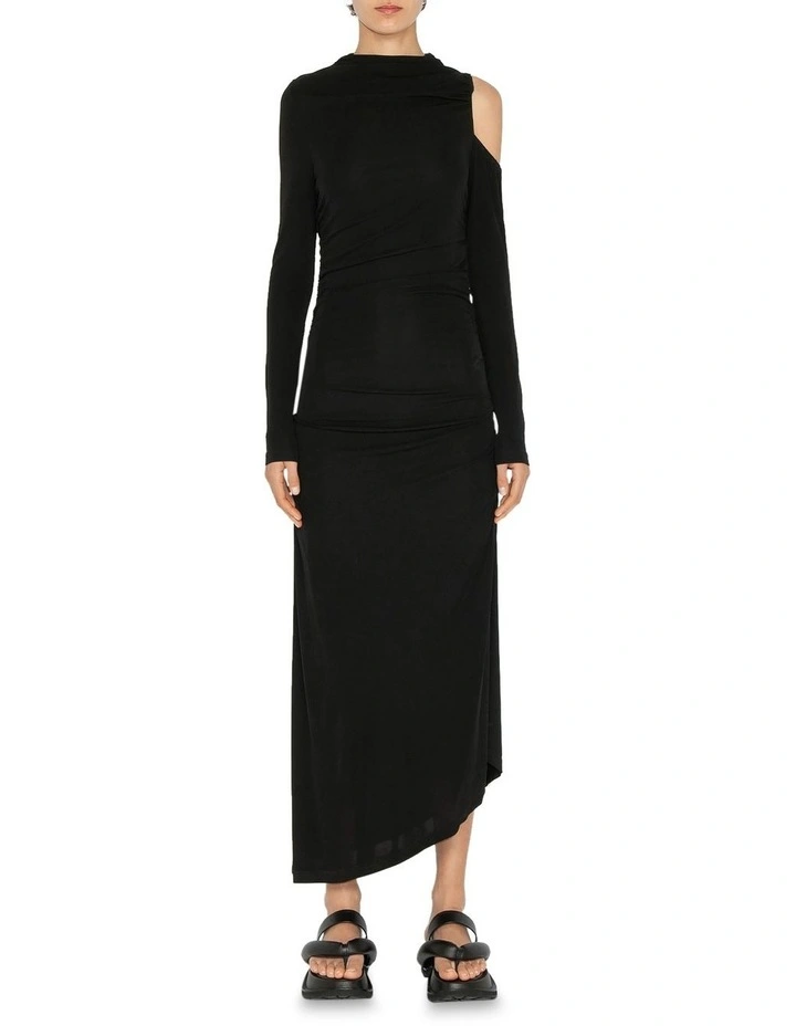 Cut from European viscose jersey, the minimalist silhouette will make this dress one of your most versatile pieces. Featuring an engineered shoulder cut out and ruching at the waist to create a flattering silhouette. Pair it back with heels or boots for a refined look. Made in Australia.