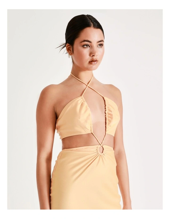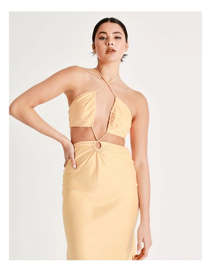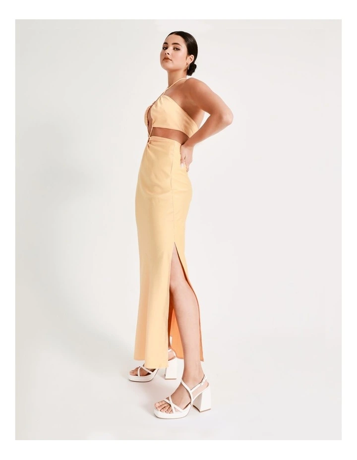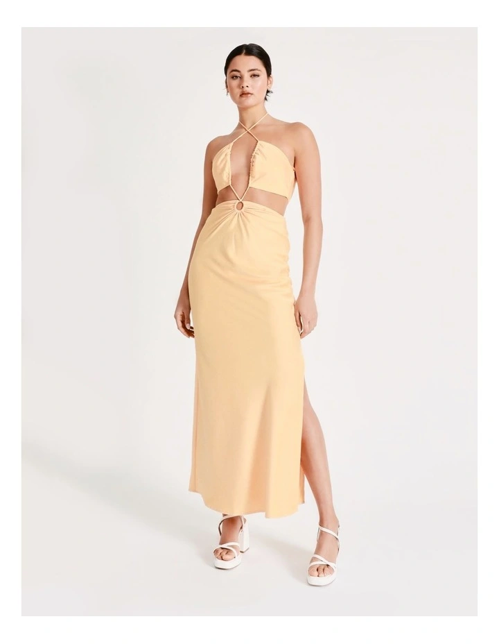Make an impact in a statement maxi dress. This dress boasts cut outs on the bodice for an eye-catching look, with a silk-look finish for comfort and style. Perfect for your next night out.Β