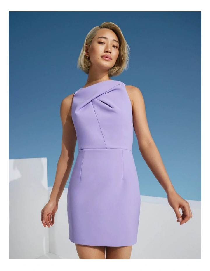 Showcasing an asymmetric draped neckline detail, a fitted silhouette and darts to create shape, the Amberlight Mini Dress in lilac is sophisticated and sweet. Simply style with your favourite pair of heels for your next day or night event.