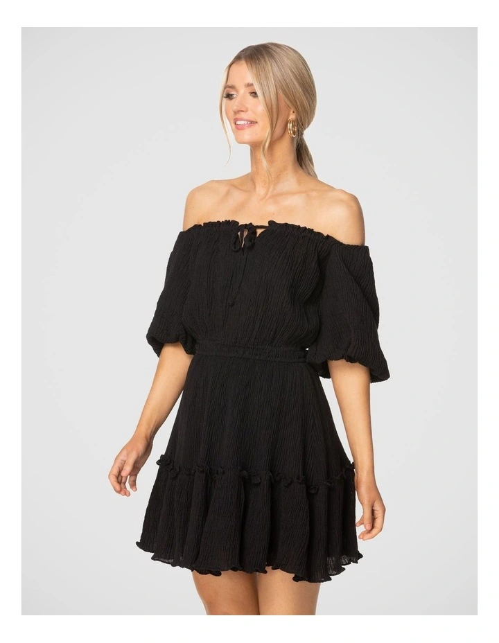 – Short puff sleeves with elasticated cuffs; wear on or off the shoulder