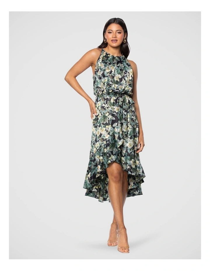 – High-low midi length skirt; ruffled hemline