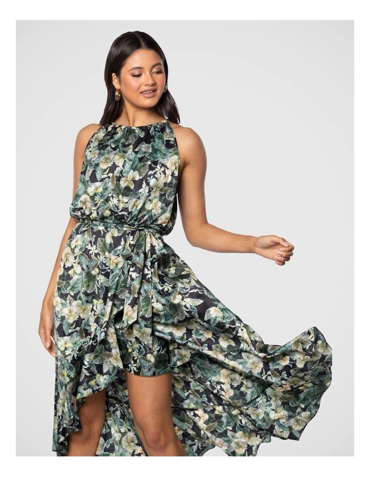 – Satin, floral print fabrication; non-stretch