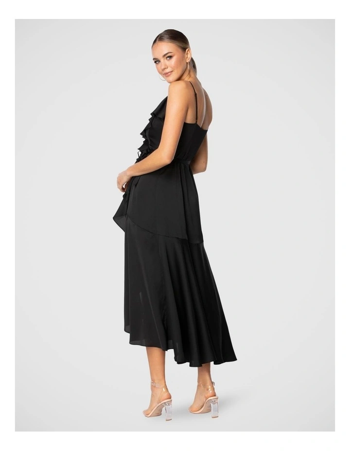 – Asymmetrical midi/maxi dress; longline ruffle hem