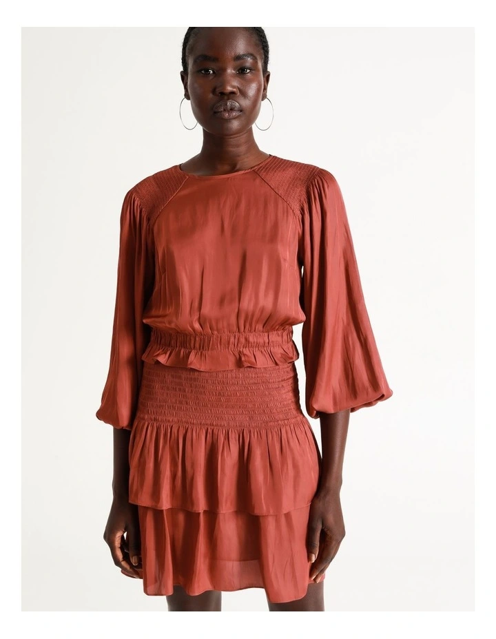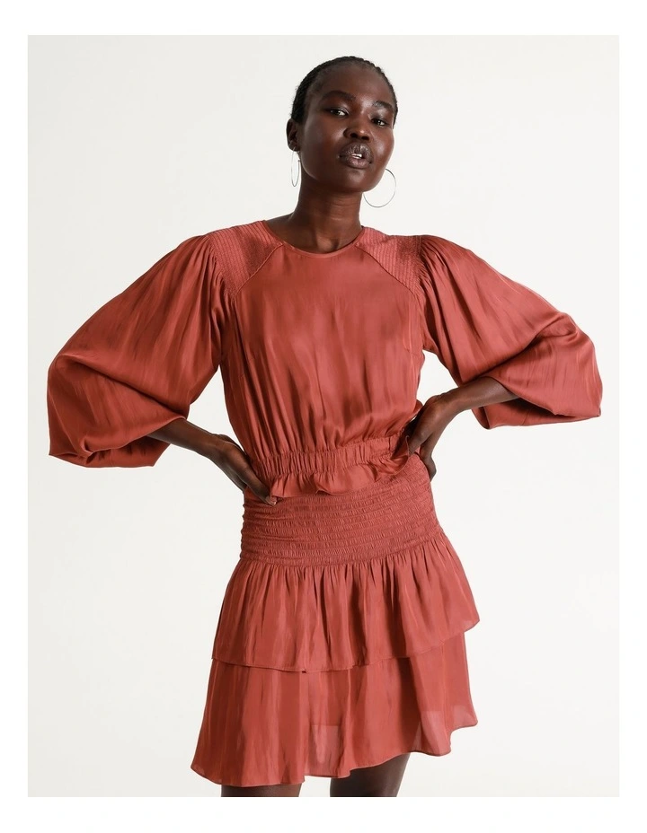 Get ready for the evening with a chic shirred waist dress. This dress boasts statement puff sleeves and a tiered skirt, alongside a classic shirred waist for the perfect silhouette. Style with heels for an elevated finish.